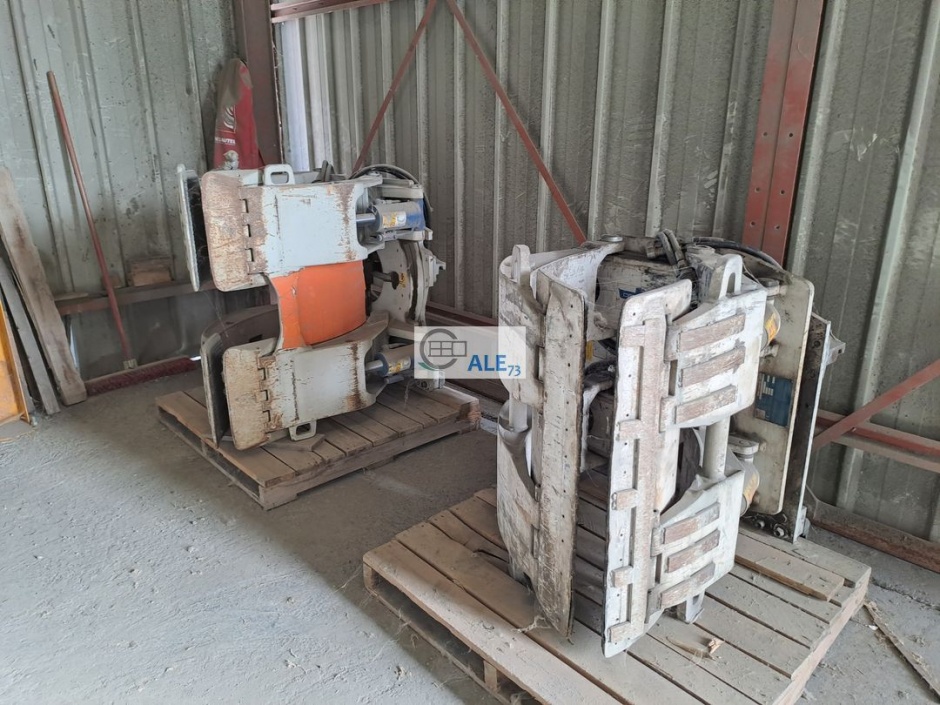 Ces 2 pinces de serrage rotatives permettent de prendre le tuyau en béton verticalement, de l'emmener se faire débaguer et de le pivoter pour un stockage horizontal.