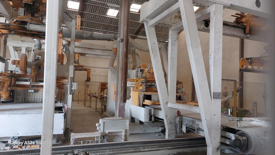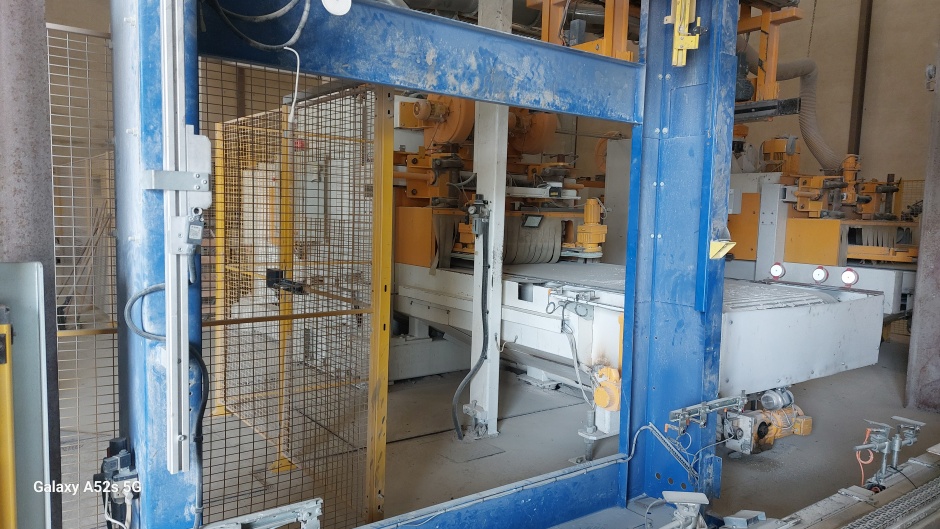 La pince n°1 dépalettise cette palette rang par rang et les dépose sue le convoyeur d'alimentation de la rectifieuse n°1